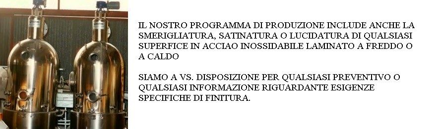 IL NOSTRO PERSONALE E IN GRADO DI SODDISFARE QUALSIASI ESIGENZA DI FINITURA SU ACCIAI INOSSIDABILI LAMINATI A CALDO O A FREDDO.